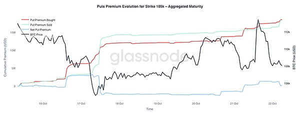 In contrast, for the $105,000 put options, the performance of this premium is exactly the opposite—as the price rises, the premium of put options also increases. This indicates that traders are continuing to prepare for potential downside risks in the price. It also suggests that the recent rebound is more due to investors' hedging operations rather than firm bullish confidence.