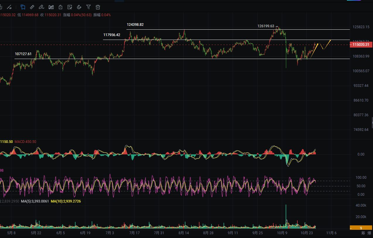 This week is a super week, with several major central banks, including the Federal Reserve, set to announce interest rate decisions. Especially for the Federal Reserve, it is almost certain that they will continue to cut rates by 25 basis points early Thursday morning. The market currently expects that the Federal Reserve will continue to cut rates this week and in December. As long as this expectation does not undergo significant changes, it will continue to support the cryptocurrency market. On the other hand, with significant progress in the US-China consultations over the weekend, the US is temporarily not considering imposing a 100% tariff on us, which has somewhat weakened the market's risk-averse sentiment. Recent market fluctuations have been considerable; in such a large range of back-and-forth movements, it is better to chase the rise and fall rather than go against the trend. Whether going long or short, one must strictly maintain defensive measures at all times.