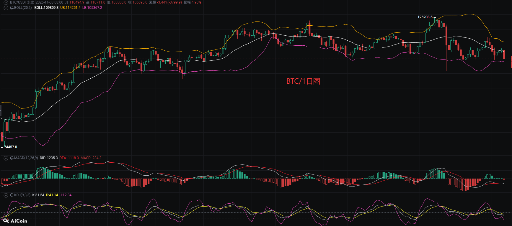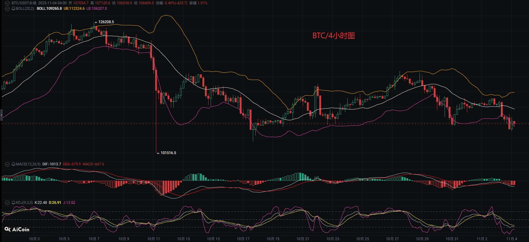 Mr. Coin in the Crypto Circle: On November 4th, the price of Bitcoin continues to decline, and the bearish sentiment is becoming increasingly strong. Here is the latest market analysis of Bitcoin today, along with operational reference ideas.