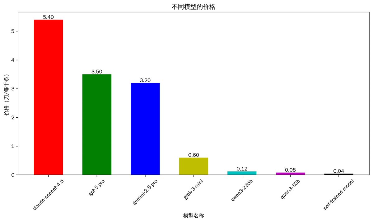 Cost is another factor to consider. To be honest, the reason that prompted me to fine-tune my own model is that the current large models are too expensive.