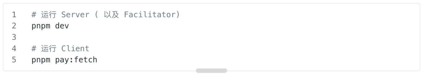 Acts as the client role, initiating requests to the server, corresponding to steps 1 ~ 4 in the flowchart. It uses helper functions provided by "x402-fetch" to automatically handle 402 statuses, generate signatures using the client's wallet private key, and resend requests, etc.