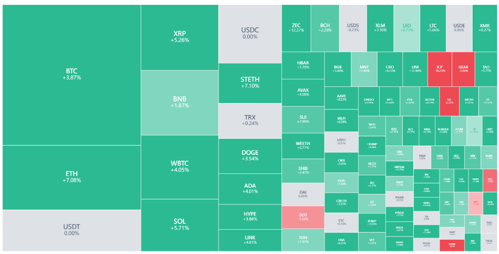 As the government shutdown nears its end, financial markets have begun to respond positively. The cryptocurrency market has seen a slight rebound after a recent pullback, with Bitcoin rising over 2.6% in a day, surpassing $105,000; Ethereum broke above $3,600, with a daily increase of 6.13%.