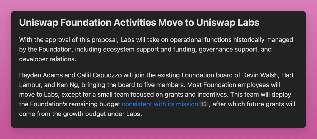Uniswap foundation activities move to Uniswap Labs, meaning...