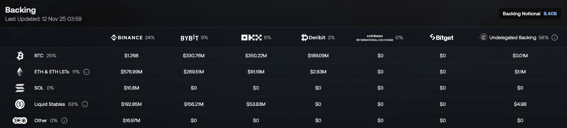 The second point is the issue mentioned earlier regarding ADL causing the neutral strategy to become unbalanced. There are rumors that Ethena has signed ADL exemption agreements with some exchanges, but this has never been confirmed, so we will set it aside for now. Even without exemption clauses, Ethena is fundamentally less likely to be affected by ADL. This is because, from its public strategy, it can be seen that Ethena primarily chooses BTC, ETH, and SOL as hedging assets (with BNB, HYPE, and XRP having very small proportions). These three major assets experienced relatively small fluctuations during the massive crash on October 11, and the counterparty's capacity to bear risk is greater. In contrast, ADL is more likely to occur in the altcoin market, which has larger fluctuations and smaller counterparty capacity. Therefore, the protocols that are currently failing are often those that lack transparency (possibly due to overly aggressive strategies that are not neutral at all).