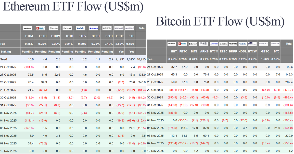 Relatively speaking, the liquidity provided by traditional investors is quite poor. From the data of the $BTC and $ETH spot ETFs, it can be seen that in the past week, traditional investors not only did not buy in, but also intensified their selling efforts. The liquidity loss caused by the government shutdown is sharply reflected in the cryptocurrency sector.