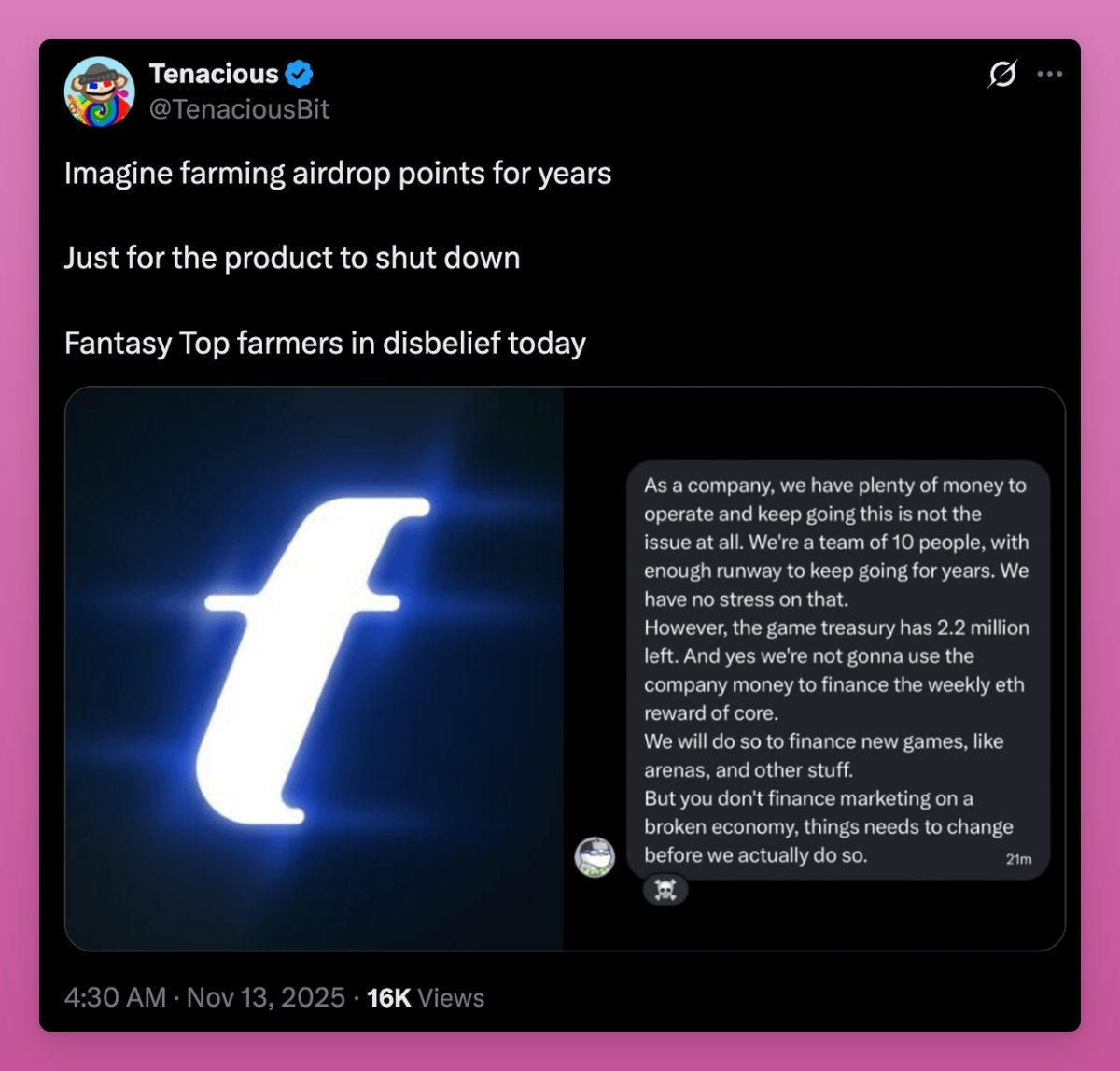 Airdrop farmers angry that Fantasy Top isn’t launching a token.