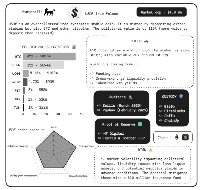 USDF (Issued by Falcon): Hybrid model providing yields through perpetual futures.