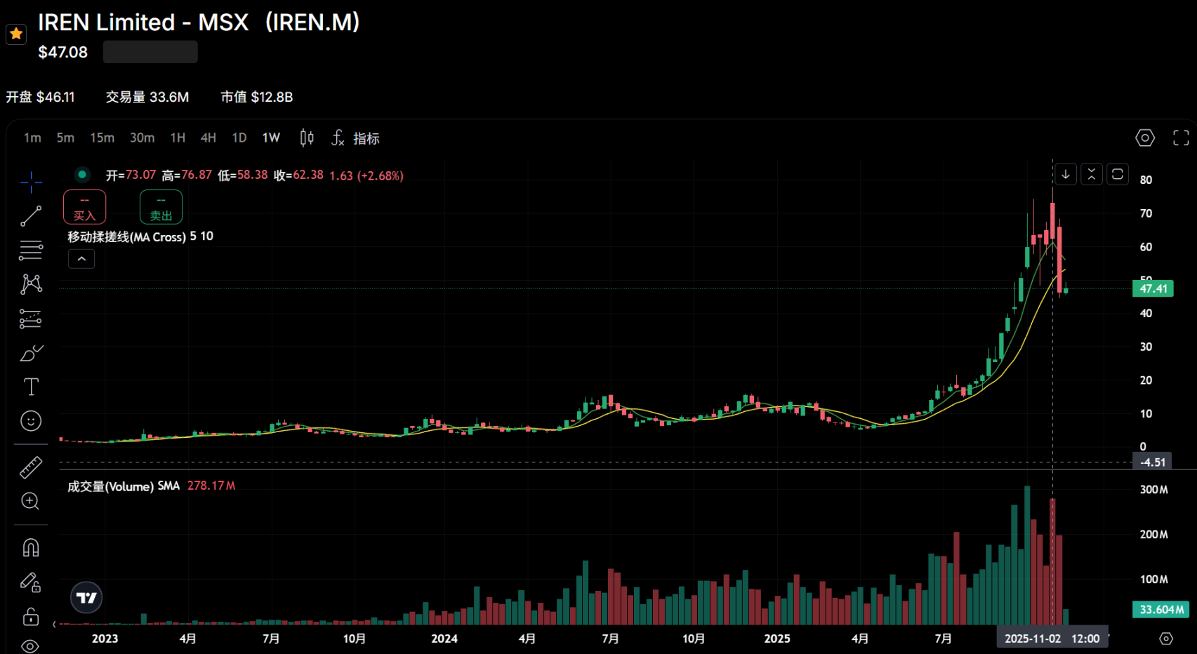 The market has also long reacted to the shift in valuation logic for mining stocks transitioning to AI. For instance, the iconic example of a mining company transitioning to AI, Iris Energy (IREN), saw its stock price rise from around $6 to a peak of $76.87 within the year, an increase of over 1200%.