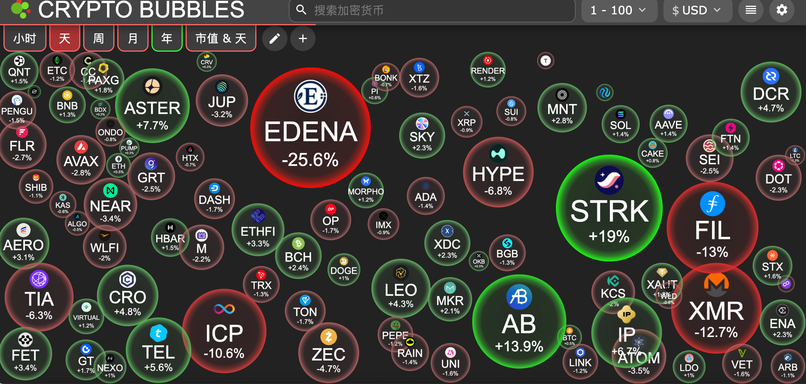 Altcoins like Solana are showing signs of decoupling from traditional financial markets, rebounding strongly from the $130 weekly support level despite a general decline in U.S. stocks. Market analysis suggests that its price may return above $200. Other altcoins have also performed variably, with ASTER rising 16% in a single day and STRK recovering in price driven by privacy concepts. In terms of project dynamics, Filecoin has hinted at a transition from storage to on-chain cloud services and has launched a testnet, but its price has not risen and has instead dropped over 10%.