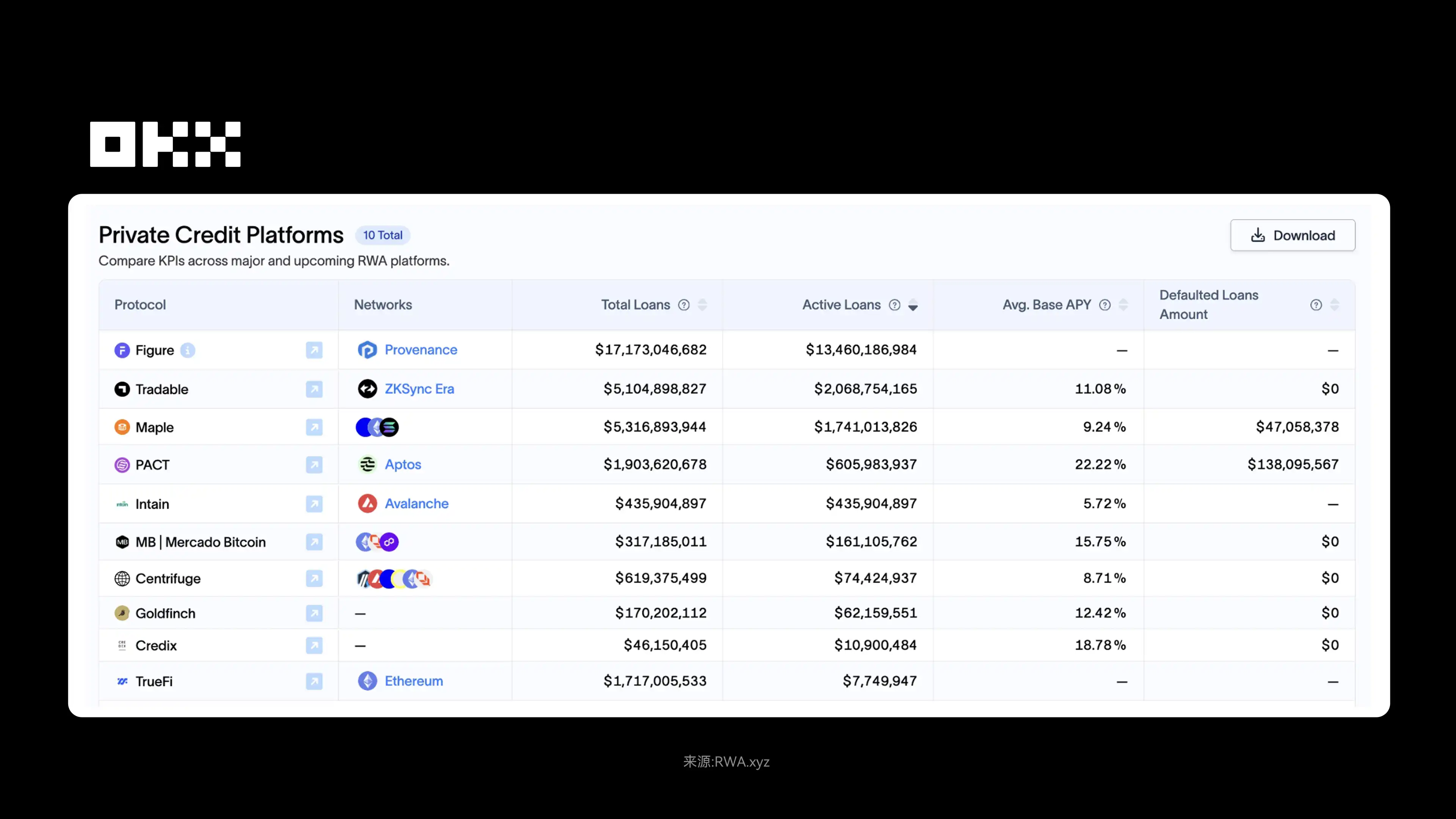 The growth of private credit comes from high yields and relative stability, providing DeFi users with annualized returns of 5%-15%, with volatility independent of the crypto market. Tokenization fragments non-liquid assets, attracting global crypto capital and enhancing liquidity while empowering traditional lenders. Moreover, it does not redefine credit but offers a more efficient receipt mechanism. Once these assets are on-chain, they can be inserted into lending markets, used as collateral, or packaged into asset-backed securities like other crypto assets.