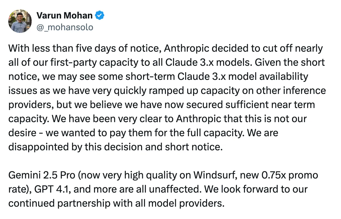 This may seem to only affect some companies like Windsurf today. As dependency grows, everyone will face this issue.