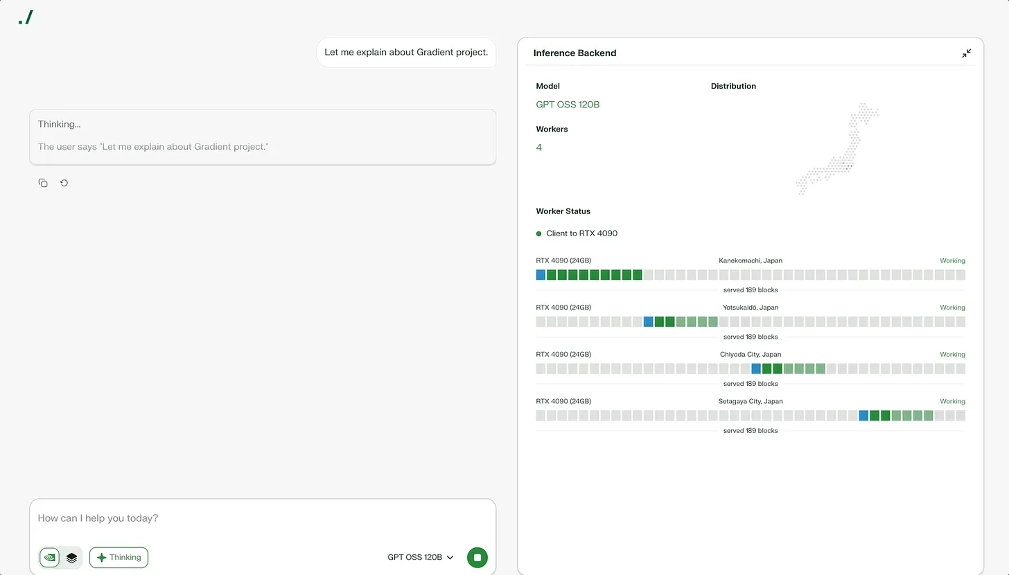 This enables individuals and small businesses to train and run large language models without their own infrastructure. Ultimately, Gradient achieves open intelligence: AI as a technology open to everyone, rather than an exclusive domain for a few.