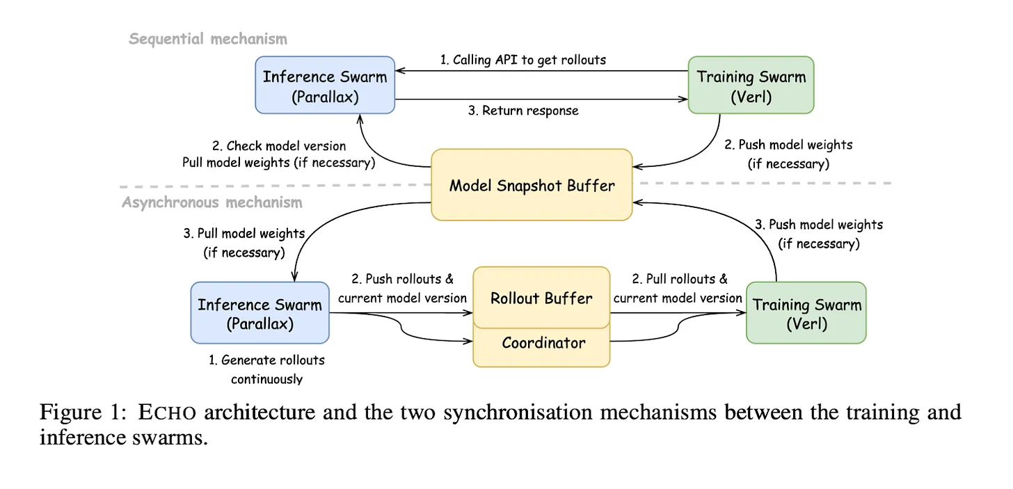 Large language model reinforcement learning requires substantial computing resources. Echo divides the reinforcement learning process into two phases and deploys optimized hardware for each phase.