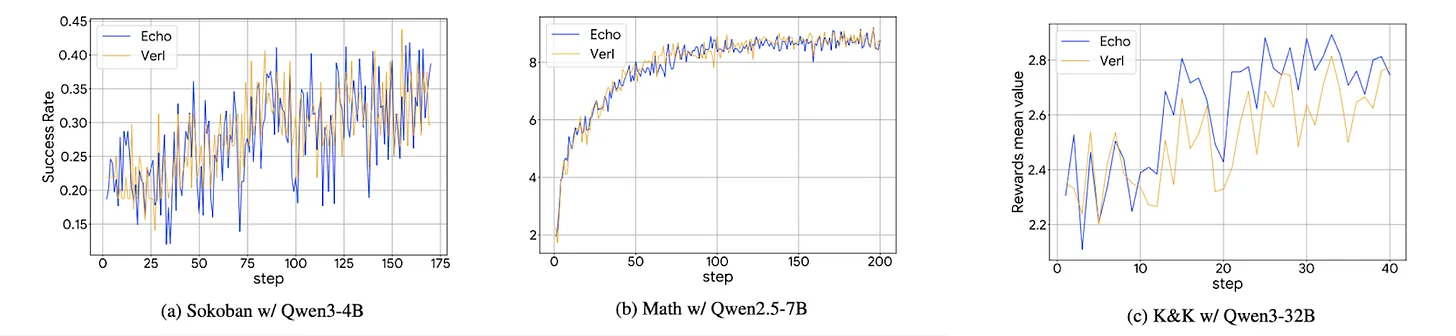 The results demonstrate Echo's effectiveness. Echo achieves performance comparable to the existing reinforcement learning framework VERL. Individuals and small businesses can now train large language models for their specific purposes in a distributed environment. Echo significantly lowers the barrier to entry for reinforcement learning.