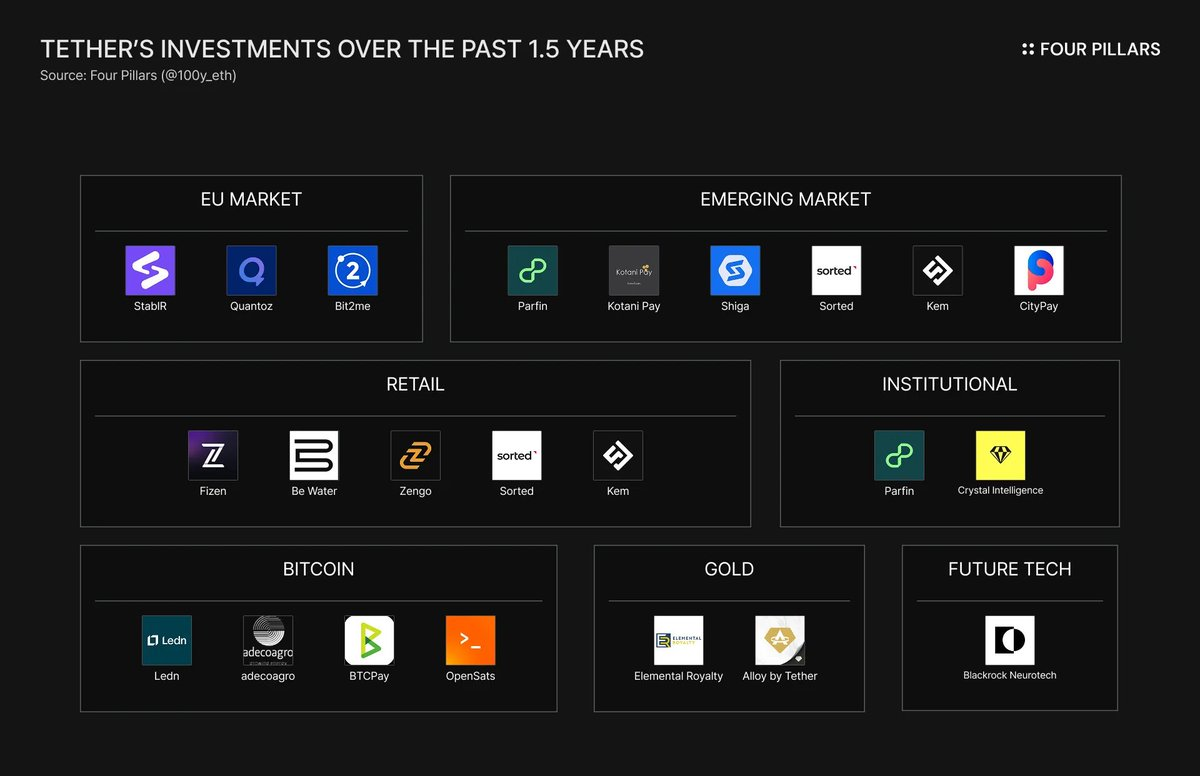 Tether announces its investment activities through its official news release platform. After analyzing about a year and a half of investment announcements, I have summarized the following key themes: