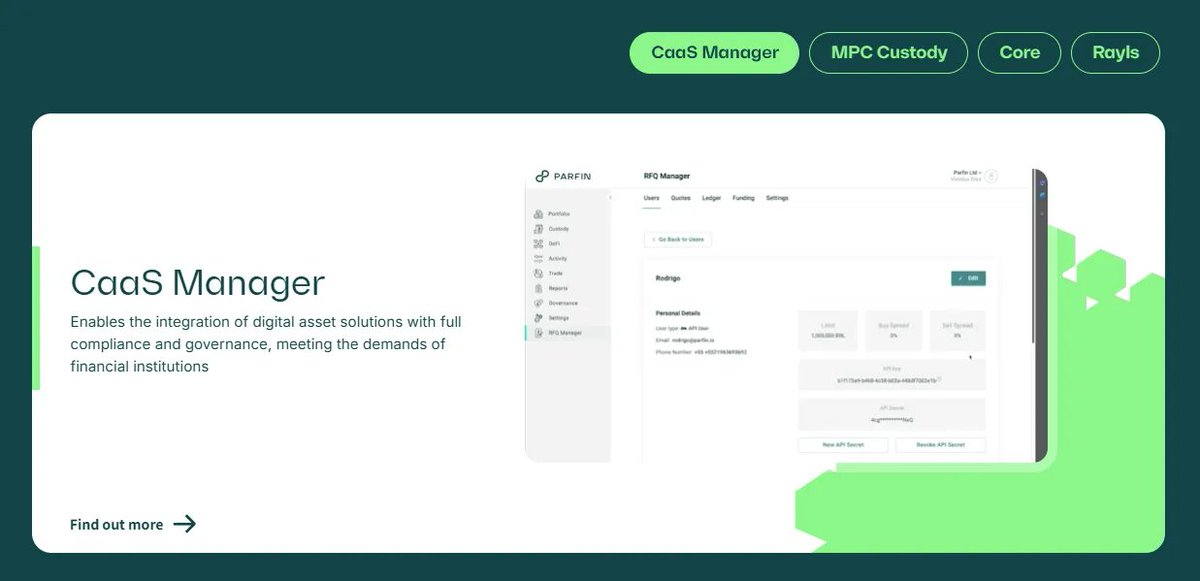 Parfin is an institutional blockchain infrastructure company based in Latin America. Parfin provides management and workflow platforms that enable financial institutions to easily adopt blockchain technology and cryptocurrencies, while also offering secure MPC (Multi-Party Computation) wallet solutions and asset tokenization services.