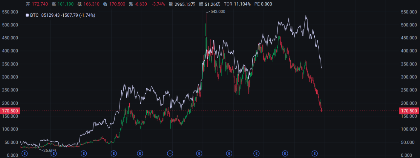 Chart explanation: Comparison of BTC and MSTR stock prices