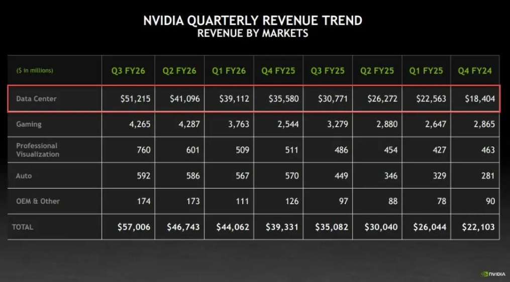 ● Fundamentally, Nvidia's business performance remains strong. In the third quarter of fiscal year 2026, the company reported revenue of $57 billion, a year-on-year increase of 62%; adjusted net profit reached $31.9 billion, a year-on-year increase of 65%.