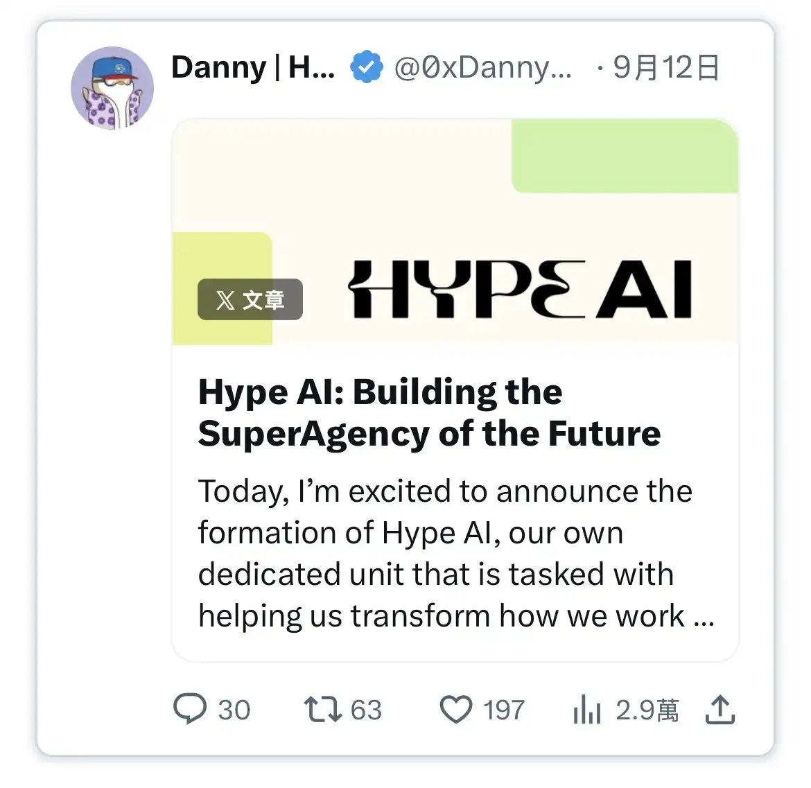 In September this year, we established the Hype AI department, led by @antefex_moon (our AI VP). More details can be found in the introduction by CEO @0xDannyHype.