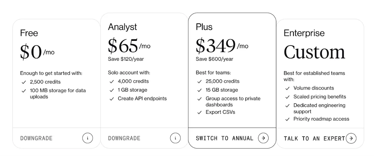 As a result, products based on seat-based charging are gradually shifting towards metered charging models. Basic packages are retained for collaboration and support, but high-load applications are charged. For example, Dune offers a limited monthly quota. Small, simple queries are inexpensive, while larger queries that run longer require more fees.