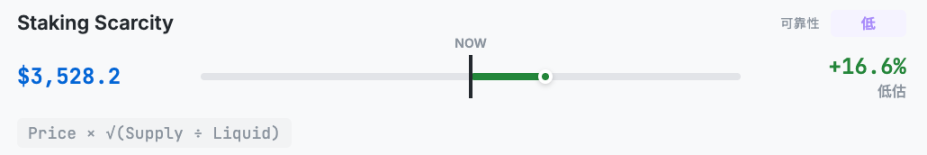 This model considers that Ethereum that cannot circulate in the market due to staking increases Ethereum's "scarcity." The price is calculated by multiplying the current price of Ethereum by the square root of the ratio of total supply to circulating supply, i.e., Price × √(Supply ÷ Liquid), resulting in a price of $3,528.2, which has a 16.6% upside from the current price.