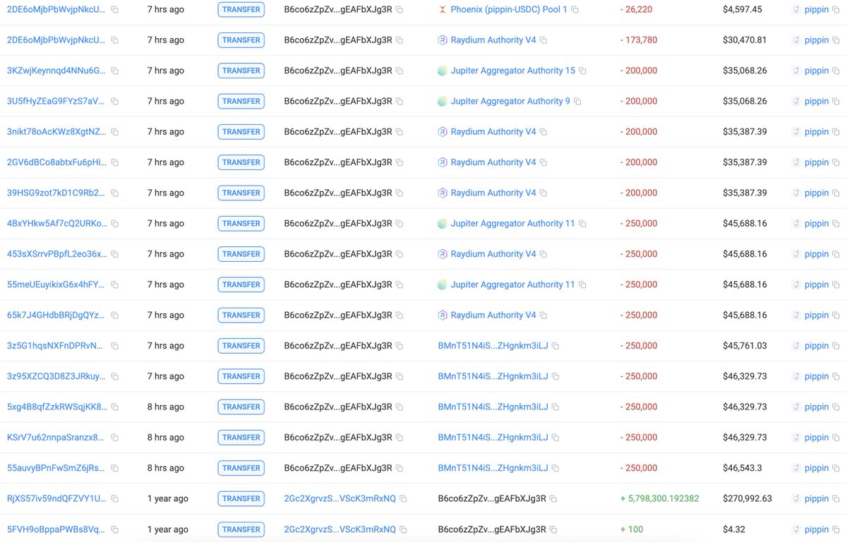 A year ago, he spent 450 $SOL($90K) to buy bought 24.8M $pippin.