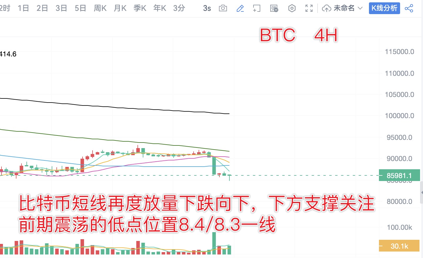 BTC: Short at 8.68, add short at 8.86 on rebound, target 8.55/8.45; look for a long at 8.4/8.3 for a 1-3000 point rebound.