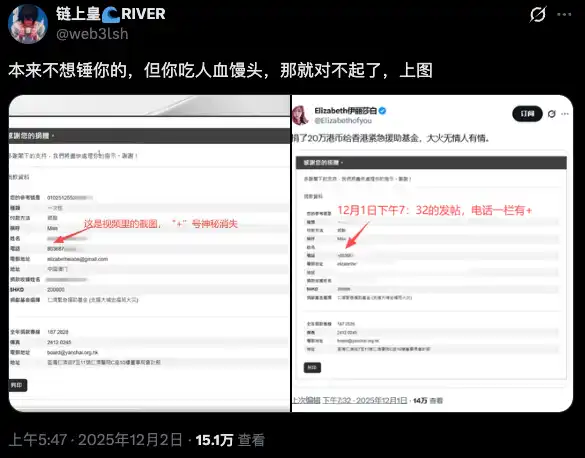 A serious fire in Hong Kong's Tai Po Hongfuk Court resulted in hundreds of casualties and property losses. Charitable organizations such as Yan Chai Hospital quickly established emergency aid funds to support the affected individuals. Many companies and individuals in the cryptocurrency industry also provided support, including industry giants like Binance and Matrixport, which donated millions of Hong Kong dollars. However, on December 1, well-known cryptocurrency community KOL @Elizabethofyou (Elizabeth) became embroiled in a "donation fraud" scandal when the community discovered that her donation receipt of 200,000 Hong Kong dollars appeared to be digitally altered.