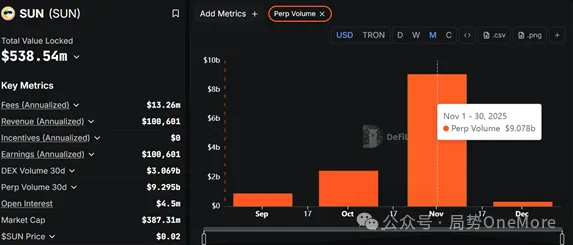 In the short term, the high incentives from Sun Wukong have attracted a massive influx of traders, solidifying the liquidity depth of designated trading pairs and directly boosting the platform's contract trading volume. According to data from DeFiLlama, in November, Sun Wukong's contract trading volume reached $9.078 billion, a 271% increase from October.