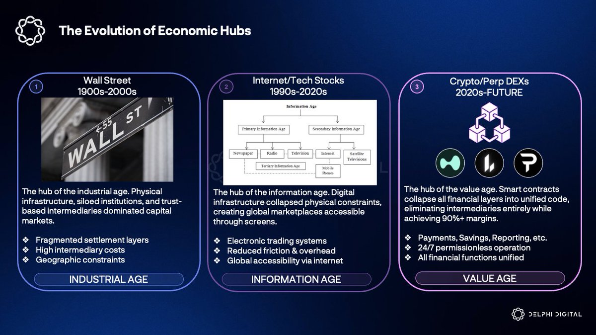 Wall Street was the hub of the Industrial Age. Electronic trading defined the Information Age. Perp DEXs could define the Value Age.