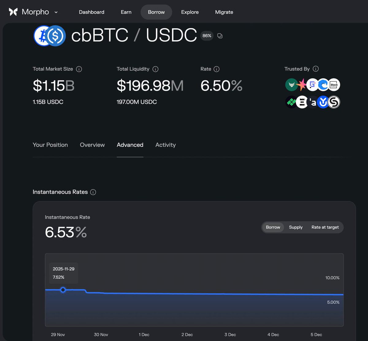 Coinbase users get the worst rates on the market simply because morpho and cb signed an exclusive deal, and now cb users pay more than 50% more on their cbbtc loans than elsewhere, ~7% vs 4-5%