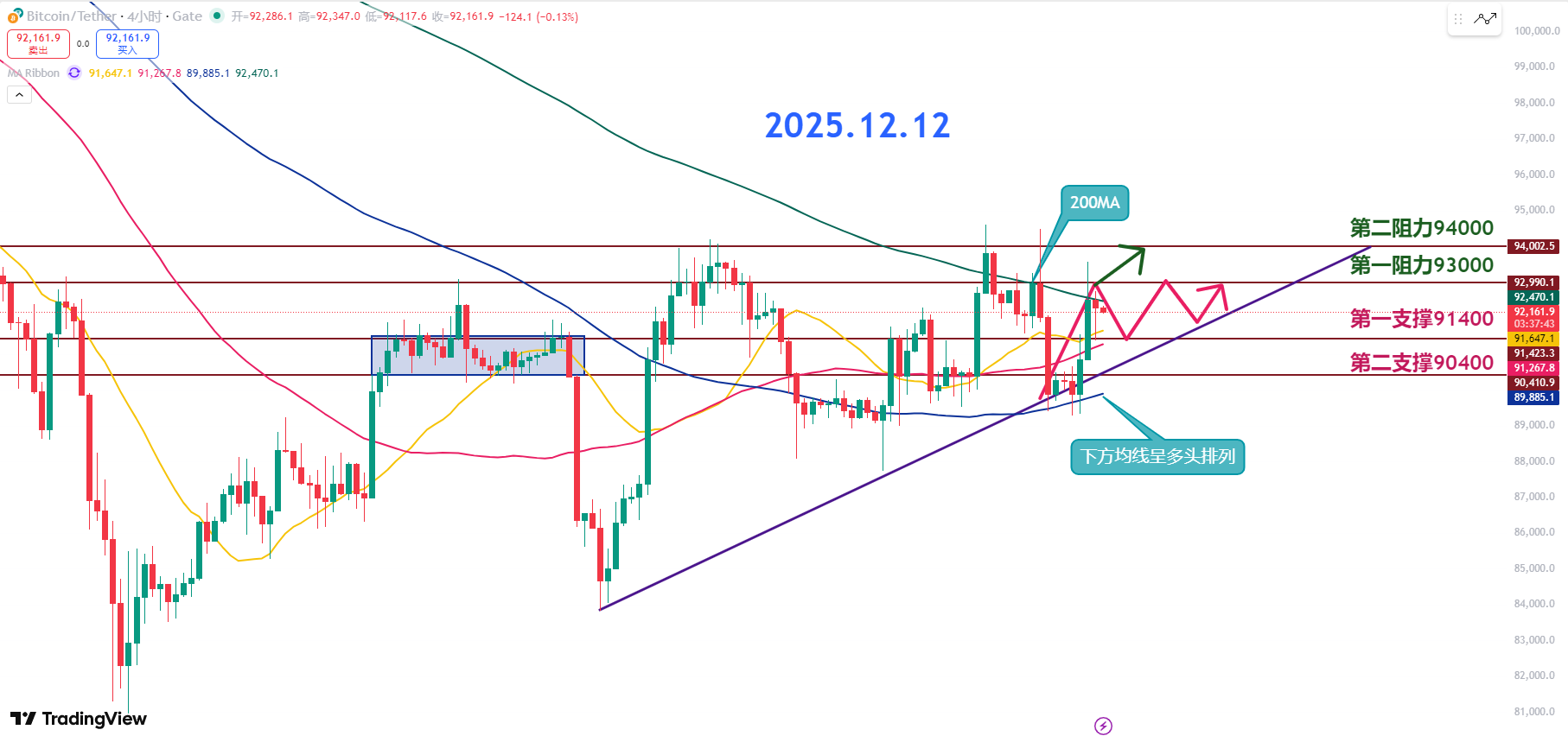 Currently, the most critical short-term support is at 91.4K. If the first support breaks, 90.4K will be the last line of defense for the bulls. Especially since the range from 90.4K to 91.4K is an important area of concentrated trading; if it breaks down again, the market will immediately switch to a downward structure.