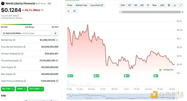 On September 16, 2024, the Trump family's decentralized finance project, World Liberty Financial, was established. On September 1 of this year, several cryptocurrency exchanges listed WLFI for trading. However, it is evident that WLFI is merely a temporary trend, having peaked at $0.24 in the month of its launch, and has since fallen by 45.1%, trading at $0.1284 at the time of writing.
