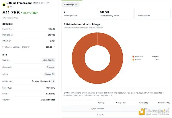 Even amid a recent downturn in the cryptocurrency market, Tom Lee expressed his determination not to sell ETH: BitMine is close to holding 4% of the total Ethereum supply, and if we stake these ETH now, it would generate over $1 million in net income daily.