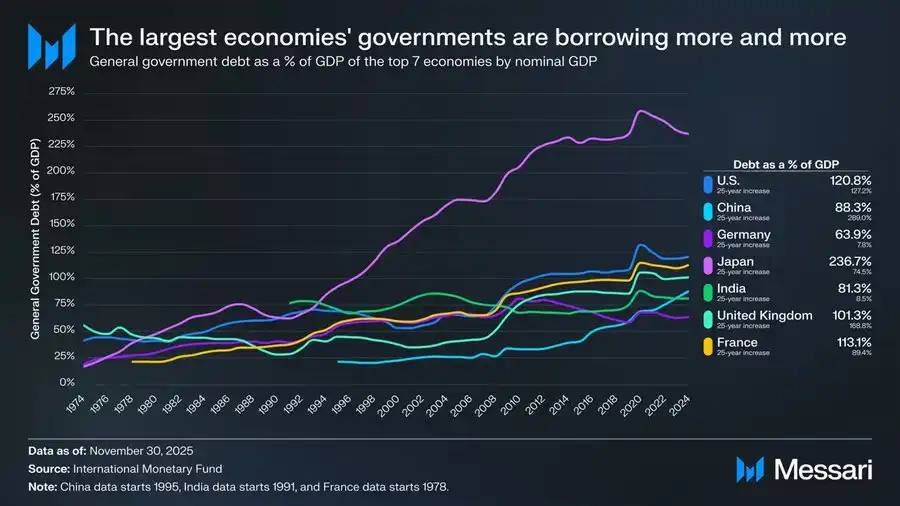 This is not the result of governance failure in any one country, but a common outcome across systems, political structures, and stages of development. Whether in democratic countries, authoritarian states, or developed economies and emerging markets, government debt has long outpaced economic growth.