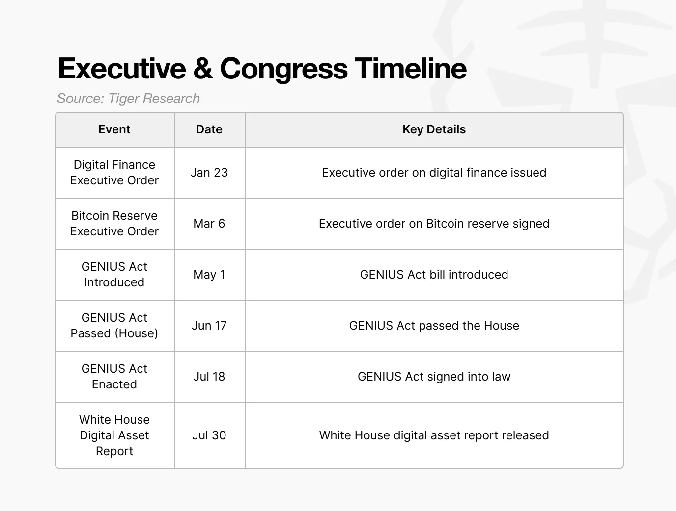 This report is written by Tiger Research. In 2025, the U.S. government is implementing a policy that supports cryptocurrency, with a clear goal: to regulate the existing cryptocurrency industry in the same way as traditional finance.