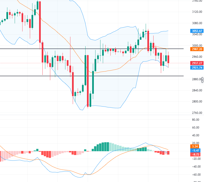Ethereum is also experiencing weak fluctuations, dipping below the 2900 mark early this morning before rebounding but facing pressure at the 3000 mark and falling back, currently hovering around 2960. The daily chart middle band at 3050 remains a key short-term resistance area to watch, and of course, the 3000 mark is also significant, as this level is a transition zone that will be tested repeatedly. As for the lower short-term support, focus on the 2900 area, which will be tested during weak fluctuations. A significant drop may continue to test the 2850–2800 area, which is also a key defensive area for intraday pullbacks.