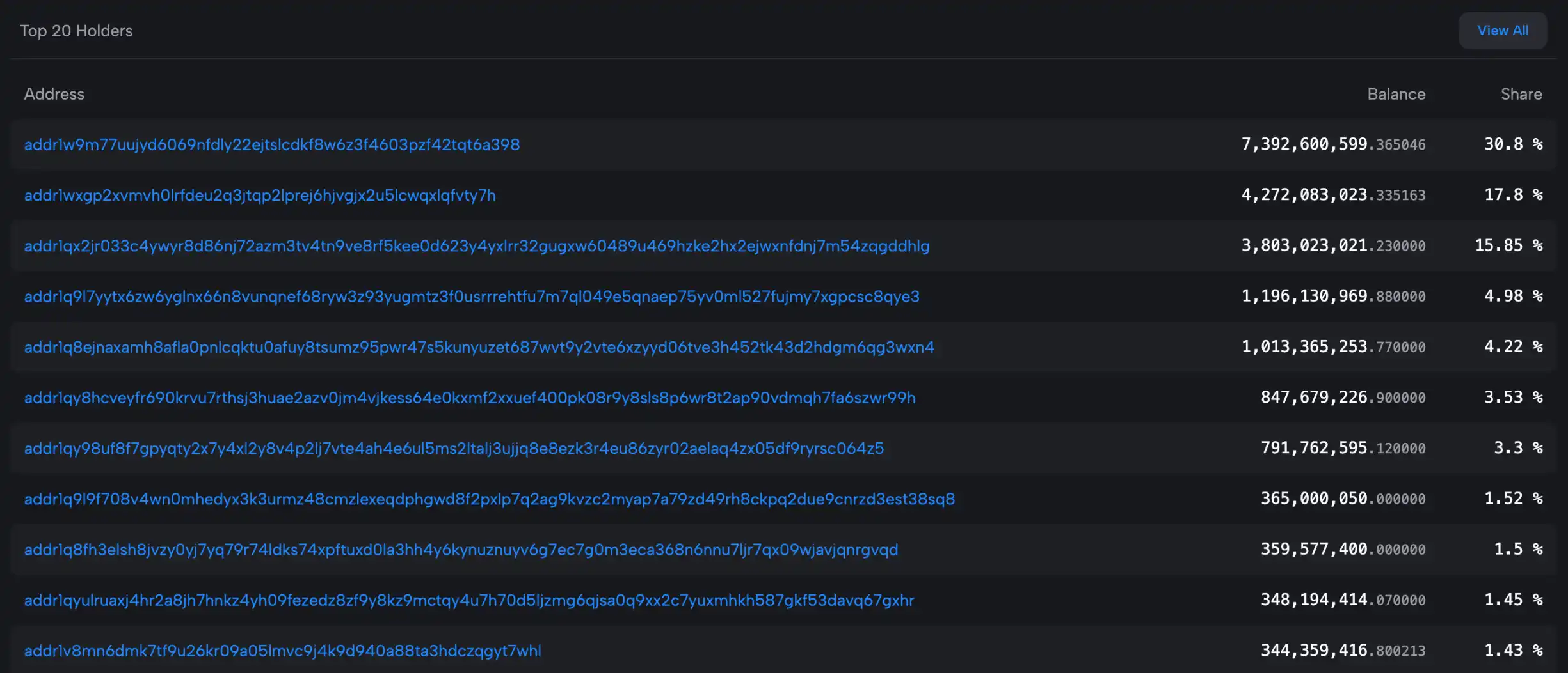 From the blockchain explorer, the top few addresses holding NIGHT, aside from the top three that likely belong to IOG or the Midnight foundation, show a relatively dispersed holding among the remaining addresses. According to data provided by the official website, I estimate that the tokens distributed through NIGHT's airdrop and activities in collaboration with trading platforms account for nearly 1/3 of the total supply (24 billion tokens), which can indeed be considered a significant distribution.