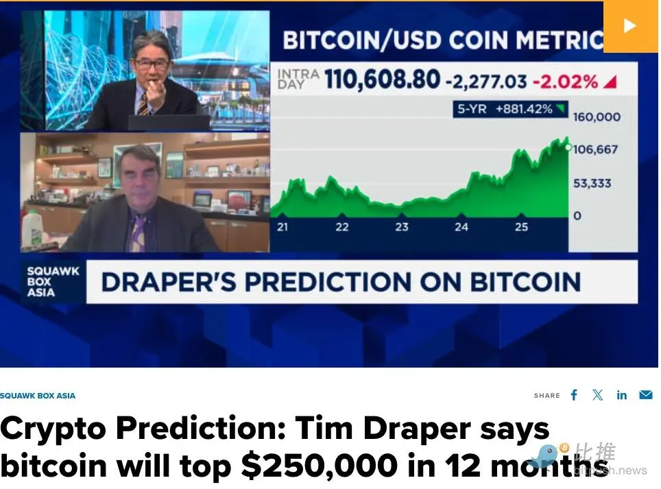As an early investor in companies like Tesla, Skype, Baidu, and Twitch, Draper previously predicted Bitcoin would reach this price in 2022, later revising the prediction timeframe to 2025.