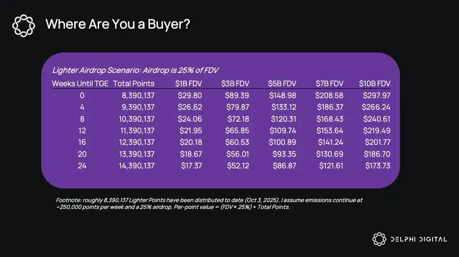 Regarding Lighter points, here are the expected airdrop limits based on the points you hold (this valuation table is from October 3):