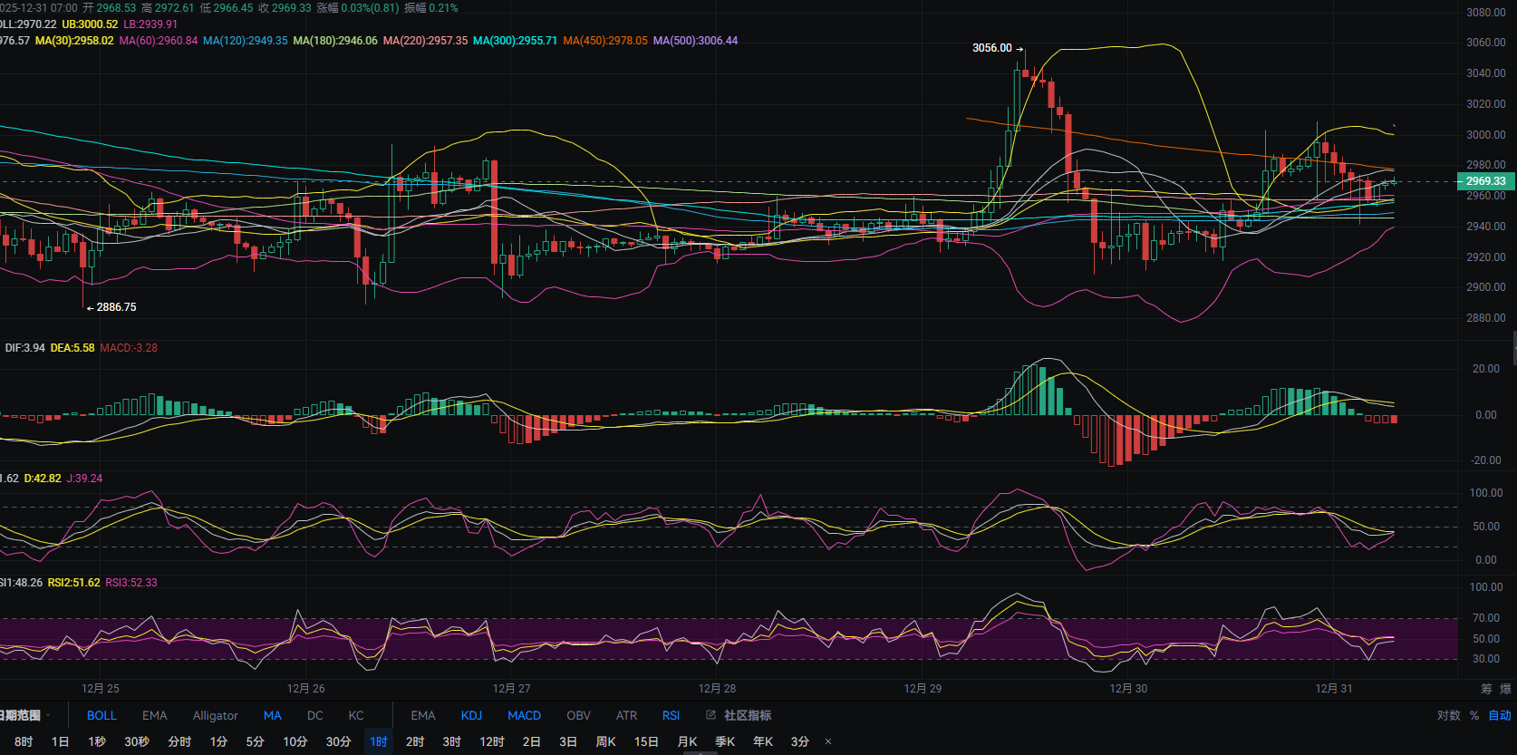 Today's Ethereum short entry point suggestion 1: Light short above 3020; stop loss at 3070; target at 2955; if broken, look for 2950-2930 for further downside!