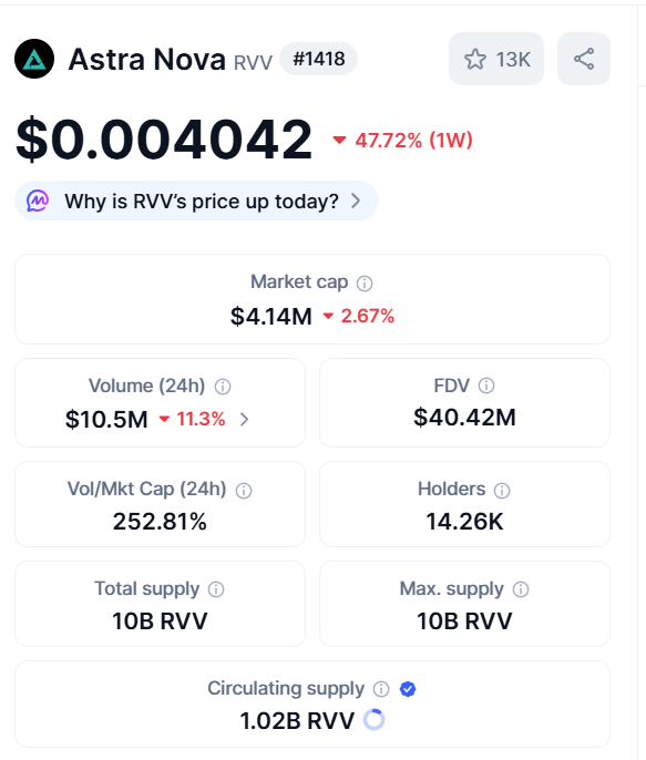 The Astra Nova team has repurchased over 660 million RVV and consolidated them into a unified address.