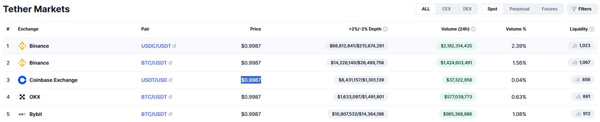 It can only be said that too many people want to sell USDT now, leading to the exchange rate bias. Of course, one of the reasons is the low rating given to Tether by S&P.
