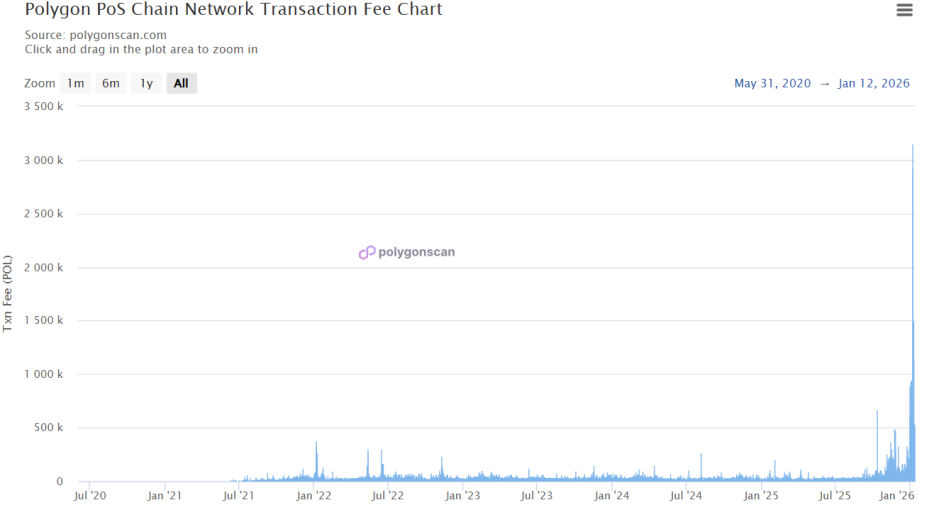 Since the beginning of 2026, Polygon has generated over $1.7 million in fees and burned more than 12.5 million POL tokens (approximately $1.5 million).