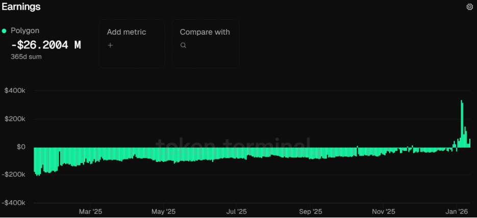 4. Concerns over financial sustainability: According to Token Terminal data, Polygon incurred a net loss of over $26 million in the past year, with its fee income insufficient to cover validator costs. This reliance on ecosystem incentives indicates that it remains in a "burning cash for market" phase. Even if Polygon turns profitable in 2026, the sustainability of its revenue-generating capacity remains to be seen.