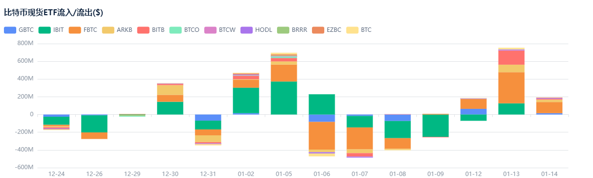 Record Single-Day Inflows: On January 13, the U.S. spot Bitcoin ETF recorded a net inflow of $753.7 million, the largest single-day net inflow since October 2025. This data strongly reversed the outflow trend caused by portfolio rebalancing and tax planning at the end of 2025, showing that institutional investors are reallocating cryptocurrency assets.