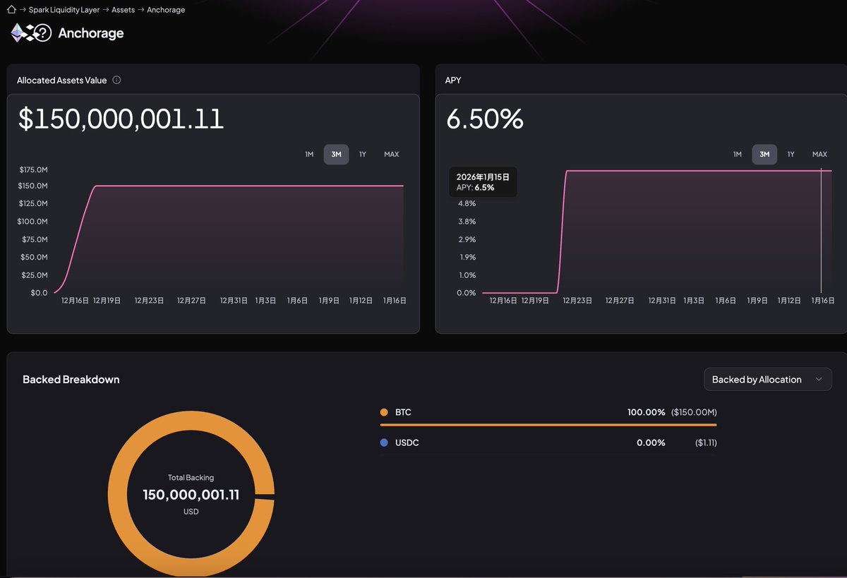⚡️Spark has begun to enter the institutional lending business, with Anchorage Digital serving as the third-party compliance custodian—