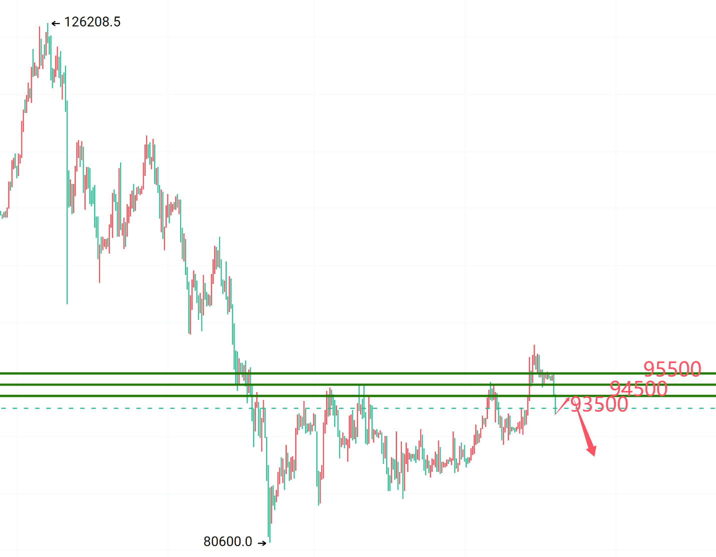 For upper resistance, pay attention to 93,500, 94,500, and 95,500. Consider participating in short positions around these levels, targeting lower at 92,500, 91,500, and 90,500.