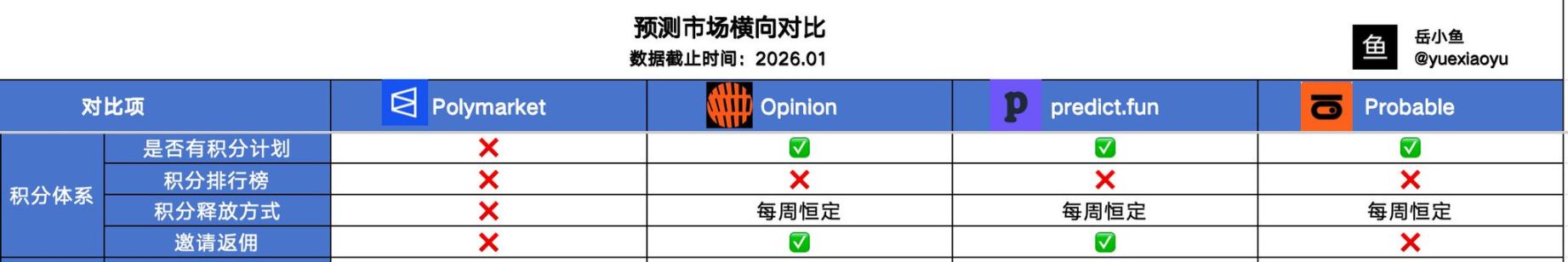 Polymarket does not have a points system, but the others do.