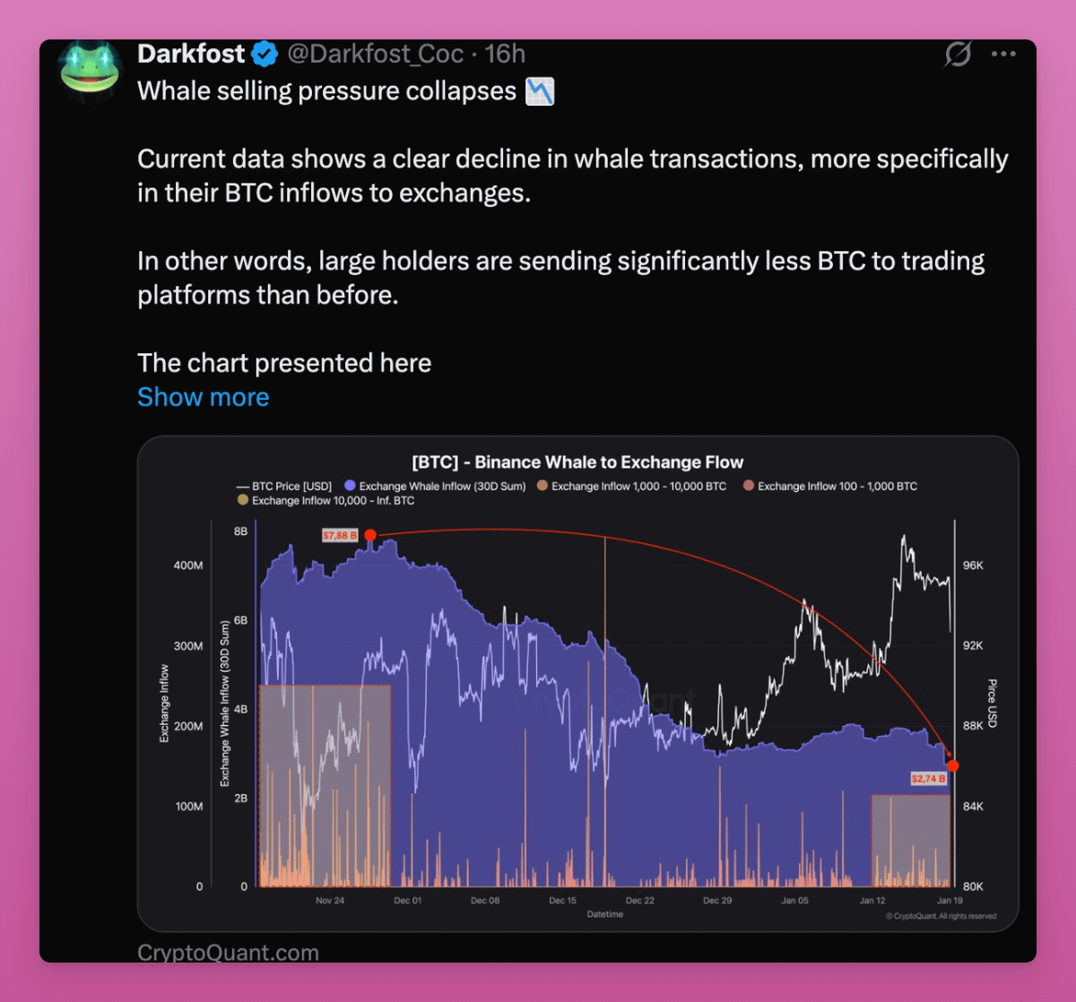 - Whale selling decreasing